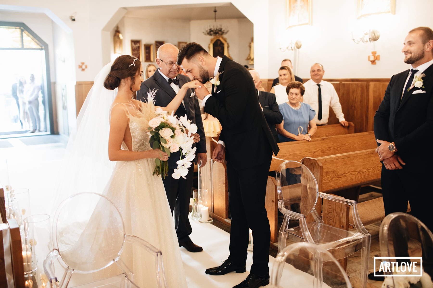 Czasem tak się zdarza, że przed ślubem nie mam możliwości by poznać moją przyszłą Parę Młodą, której będę towarzyszył podczas ślubu. Niesie to za sobą dużą dawkę niepewności i założenia pewnie początkowe, większe trudności w nawiązaniu dobrej i przyjaznej relacji. Kiedy tylko w ten lipcowy dzień, przyjechałem na przygotowania do Adriana i Asi, nie miałem w sobie, żadnego poczucia, że widzimy się pierwszy raz. Cała piękna maszyna ruszyła, a ja byłem tam gdzie chciałem. Byłem już tylko cieniem, a tak pracuje mi się najlepiej. Czułem się dosłownie jak ryba w wodzie.